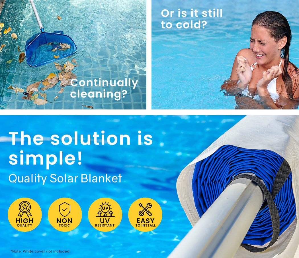 Keep your pool clean from debris and warm from the power of the sun with Aquabuddy's Aluminium Pool Roller and 10m x 4m Pool Cover....