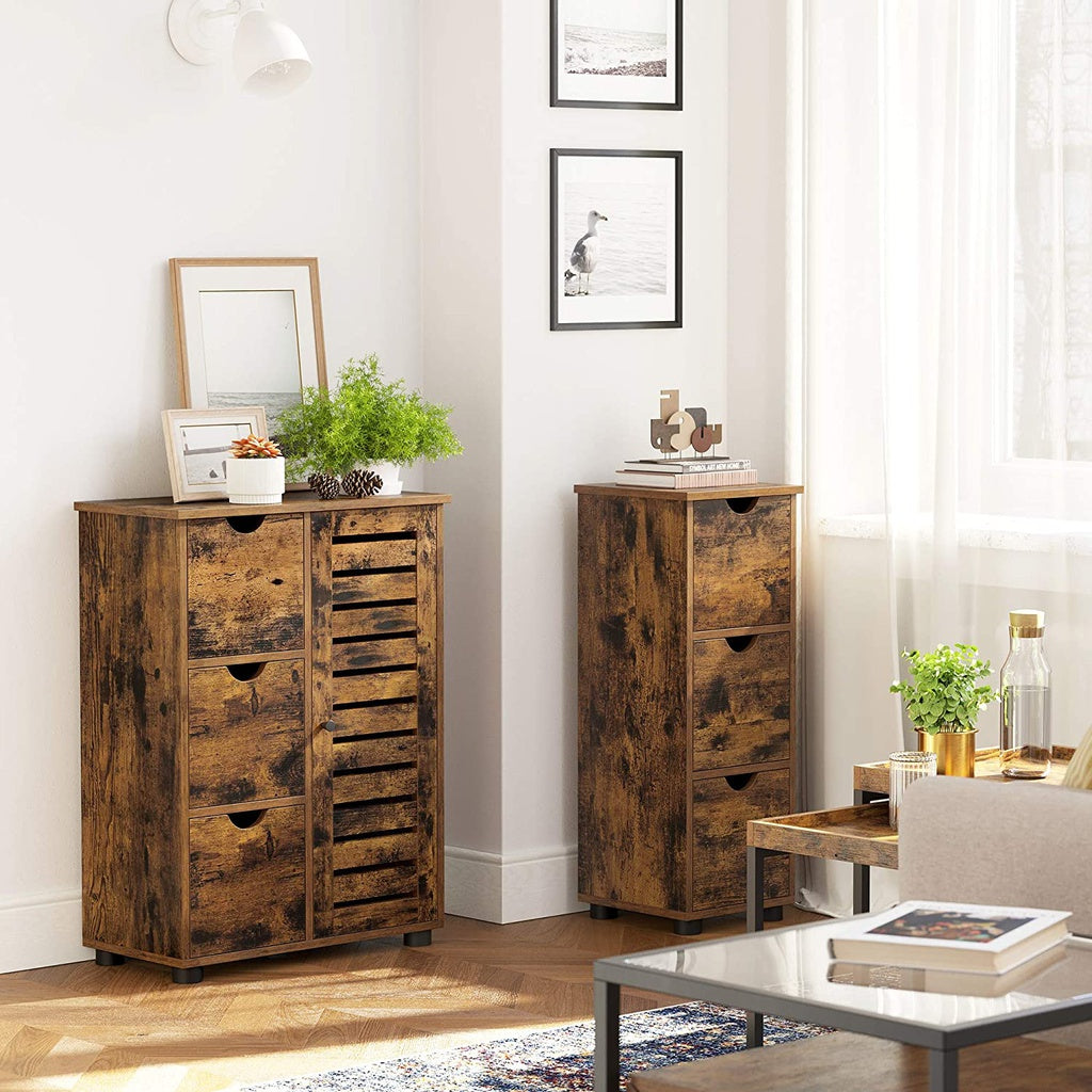 VASAGLE Bathroom Floor Cabinet 3 Drawers Rustic Brown BBK150X01 FEATURES Don't Sacrifice Style: Do you love modern furniture with straight lines, but still can't keep...