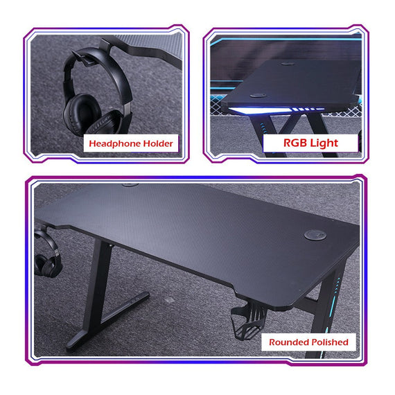 120cm RGB Embeded Gaming Desk Home Office Carbon Fiber Led Lights Game Racer Computer PC Table Z-Shaped Black