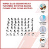 - Accessories: Straight and right-angle cream trowels, 3 cream scrapers, 2 flower nails, 1 flower lifter, 1 tip cleaning brush, 1 straight cake spatula, 1 curved cake spatula, 2 cake nozzle couplers, 100 disposable icing bags, and 1 12-inch reusable pastry bag