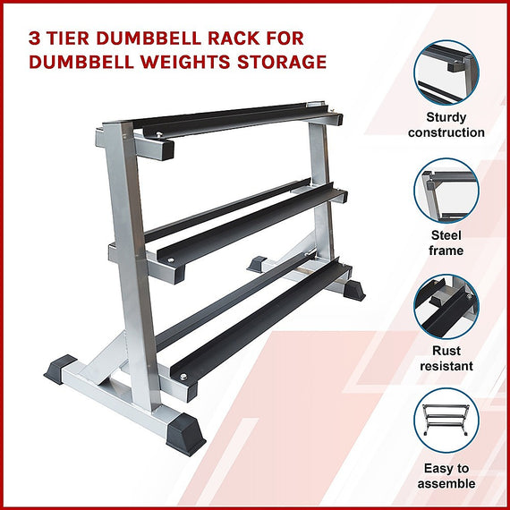 3 Tier Dumbbell Rack for Dumbbell Weights Storage