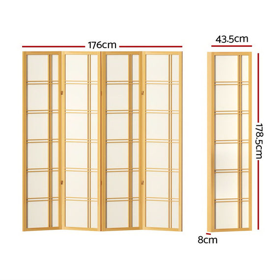 Artiss Room Divider Screen Privacy Wood Dividers Stand 4 Panel Nova Natural