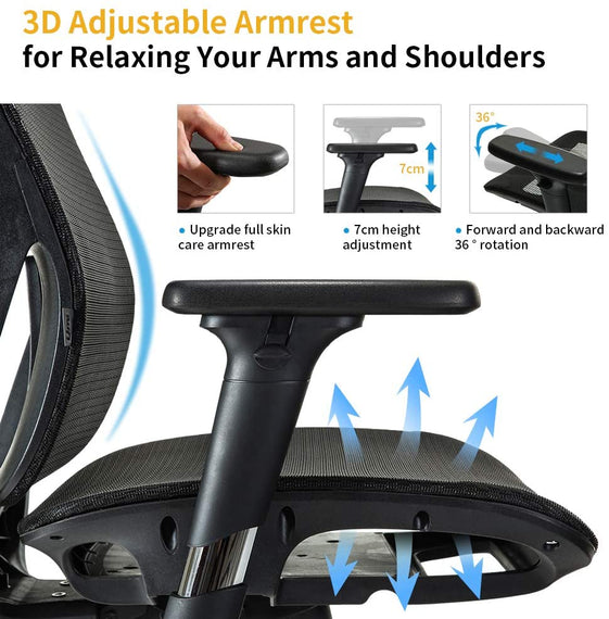 Ergonomic office chair Breathable High-Back Mesh Adjustable Lumbar Support 3D Armrests Tilt Function 360° Rotating Wheels