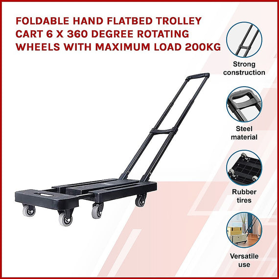Foldable Hand Flatbed Trolley Cart 6 x 360 Degree Rotating Wheels with Maximum Load 200Kg