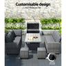 Looking to create a chic and gorgeous outdoor dining setting? The Gardeon 8-seater wicker outdoor dining set is a must purchase. It will liven up your outdoor space and help you achieve an elegant space where you can enjoy day and night and summer and winter. The set comprises of two three-seater sofas, a corner attachment, a large table and two ottomans. Its beautiful and versatile design makes it perfect for indoor and outdoor use. This outdoor set features a lovely wicker weave for a touch of tropical charm, and the UV-resistant PE wicker with weather-resistant steel frame is suitable for all-season use. Its customisable design allows you to style this outdoor dining set in multiple ways. The large wood plastic table boasting solid structure ensures strength and durability. It comes with under-table storage shelf that allows you to keep magazines, cutlery, and other knick-knacks. Our outdoor wicker thick-padded sofas also come with removable cushions that allows you to go cushion-less to suit different seasons, and the polyester covers are easy to keep clean. The pillows are also comfortable and soft for a comfortable sitting. This wicker outdoor dining set will withstand the test of time. You can create a praise-worthy spot with just a little creativity that will wow your guests. Shop it for your home today.