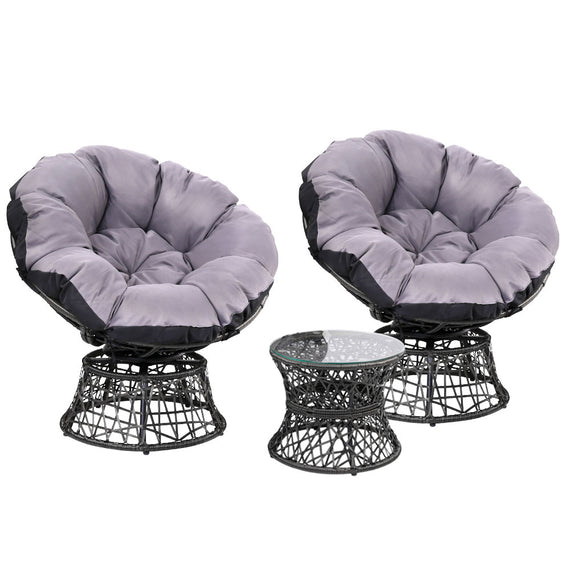 Gardeon Outdoor Lounge Setting Furniture Wicker Papasan Chairs Table Patio Black