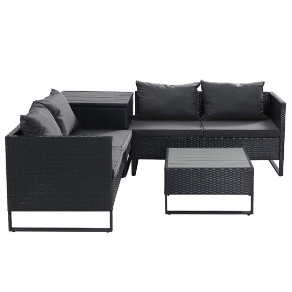 Gardeon 4-Seater Outdoor Sofa Furniture Lounge Set Wicker Setting Black