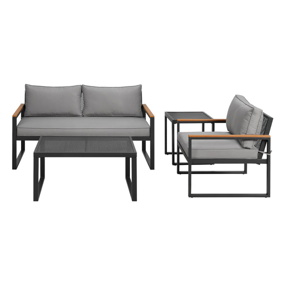 Get outdoors just in time for summer with the Gardeon 3-seater Outdoor Sofa Set. Featuring a two-seater sofa, a single sofa, a wide coffee table and a side table, there's plenty of space for the whole family. The set is easy to assemble, and you can easily configure the seating into your perfect outdoor set-up. The set is made using powder-coated steel for rust and water resistance, while the outdoor cushions feature water and UV-resistant covers and thick 8cm high-density foam for comfort. The tabletop's mesh design easily drains during wet weather, and the additional side table is an elegant solution to hold your outdoor essentials. Maintenance is as easy as wiping down the furniture, and you can remove the cushion covers for even easier cleaning. So what are you waiting for? Make the most out of the beautiful weather with a Gardeon 3-seater Outdoor Sofa Set.