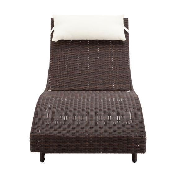Gardeon 2PC Sun Lounge Wicker Lounger Outdoor Furniture Beach Chair Garden Adjustable Brown