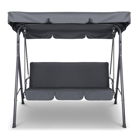 Gardeon Outdoor Swing Chair Garden Bench Furniture Canopy 3 Seater Grey