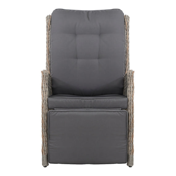 Gardeon 2PC Recliner Chairs Sun lounge Wicker Lounger Outdoor Furniture Adjustable Grey