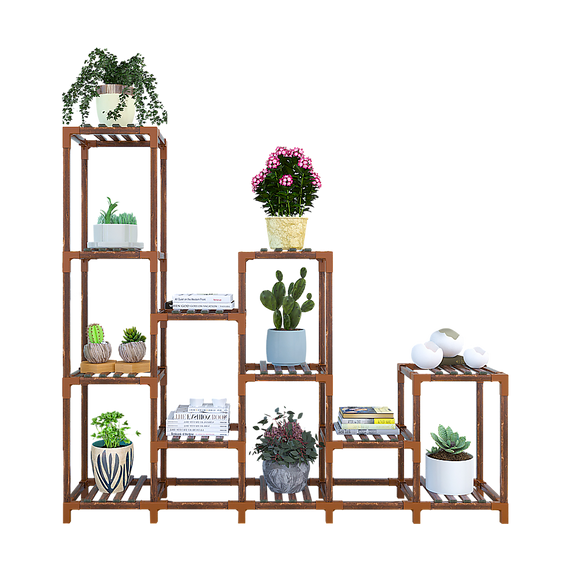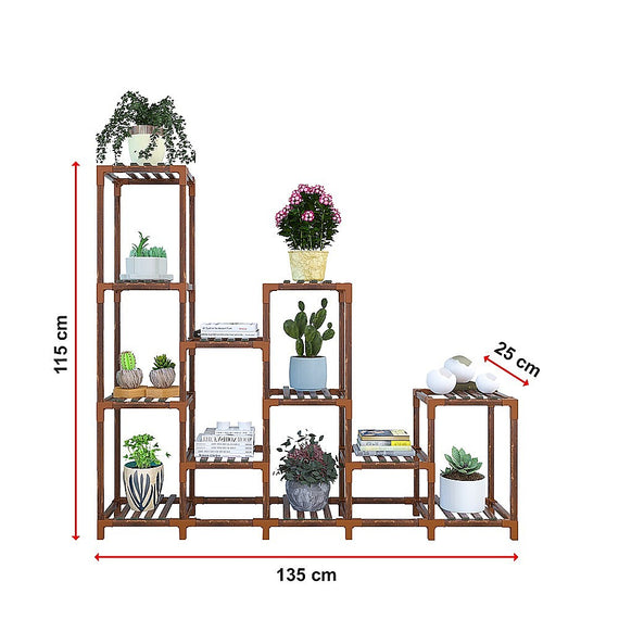 Indoor Outdoor Garden Plant Stand Planter Flower Pot Shelf Wooden Shelving - 12 Shelves