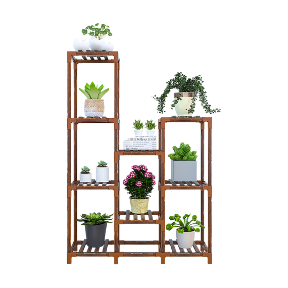 Indoor Outdoor Garden Plant Stand Planter Flower Pot Shelf Wooden Shelving - 9 Shelves