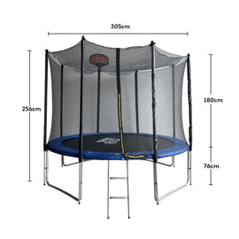 Kahuna 10ft Outdoor Trampoline With Safety Enclosure Pad Ladder Basketball Hoop Set Blue