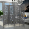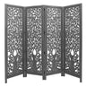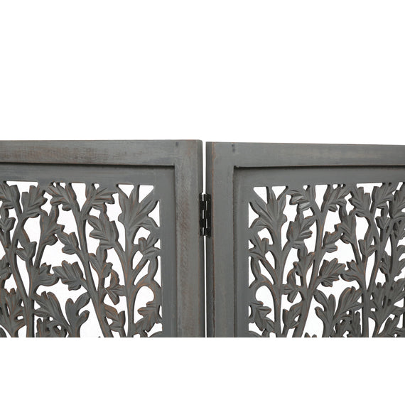 Effectively use the available space in your home with this room divider. The timber screen creates a private space in a room while also adding to its aesthetic appeal. The dark grey colour screen is designed in an exotic pattern using sustainably harvested solid mango wood. This particular wood is well-known for its high water resistance, long durability, and beautiful texture. The traditional style timber screen with strong legs can extend up to 1.8 metres and serves as both a space-saving and a space-dividing furniture piece. The artistic work on the screen, which includes engraved tree and leaf replicas at regular intervals, and a curvy top give it a beautiful appearance, filling the entire area with positivity. The screen is divided into 4 panels that are easily foldable. Lightweight yet strong, the room divider uses high-performance metal hinges that can withstand daily use. This fully assembled timber screen comes with a one-year warranty.