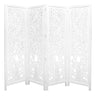 Effectively use the available space in your home with this room divider. The timber screen creates a private space in a room while also adding to its aesthetic appeal. The white colour screen is designed in an exotic pattern using sustainably harvested solid mango wood. This particular wood is well-known for its high water resistance, long durability, and beautiful texture. The traditional style timber screen with strong legs can extend up to 1.8 metres and serves as both a space-saving and a space-dividing furniture piece. The artistic work on the screen, which includes engraved tree and leaf replicas at regular intervals, and a curvy top give it a beautiful appearance, filling the entire area with positivity. The screen is divided into 4 panels that are easily foldable. Lightweight yet strong, the room divider uses high-performance metal hinges that can withstand daily use. This fully assembled timber screen comes with a one-year warranty.