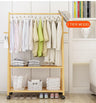 Rail Bamboo Clothes Rack Garment Hanging Stand 2 and 3 Tier Storage Shelves Closet